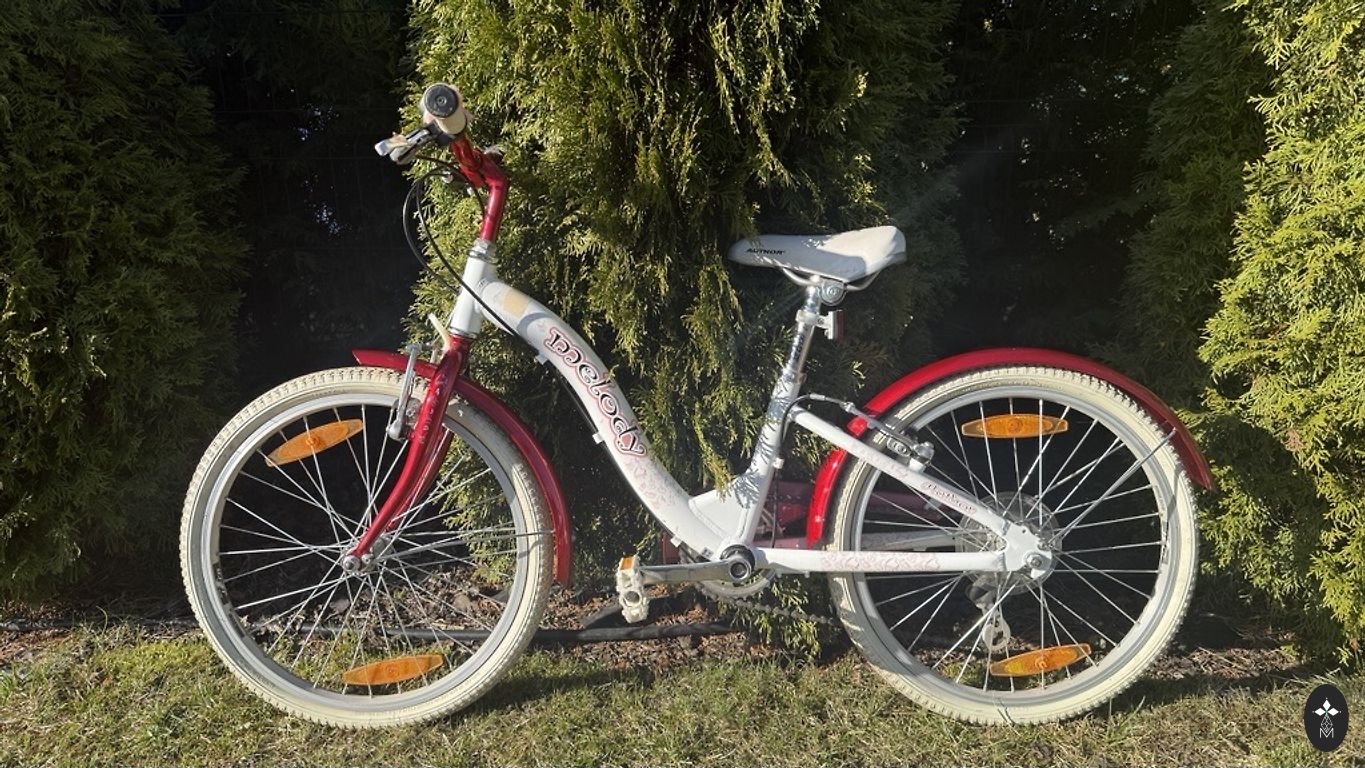 Vaikiškas dviratis 20 colių. Šeši greičiai. Dviratis yra labai geros techninės ir vizualinės būklės. Mūsų atveju tiko 5-8 metų vaikams. Yra Cėsiuose. Krepšelis ir apsauginis šalmas pridedami.