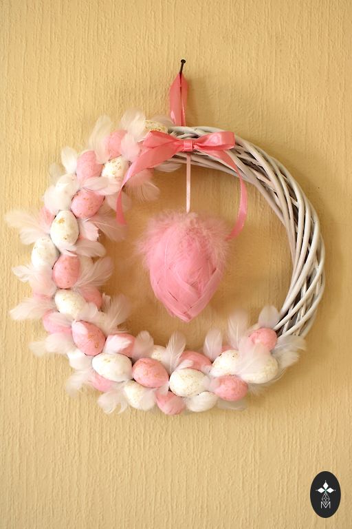 Jauks, balts-pasteļkrāsas Lieldienu durvju vainags svētku nosaņai. 🐣🌸