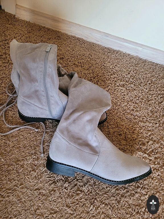 Носила всего пару раз, очень тепло. Цвет в жизни красивее. Я 180 см и они выше колена.
