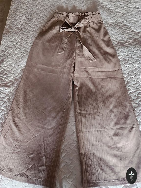 Брюки 'maison scoch' с карманами, спереди молния, по бокам кнопки для расширения и сужения. Обхват талии 98 см, но можно увеличить до 102 см, в бедрах до 120 см, длина ноги по наружной стороне 106 см, по внутренней стороне 77 см.