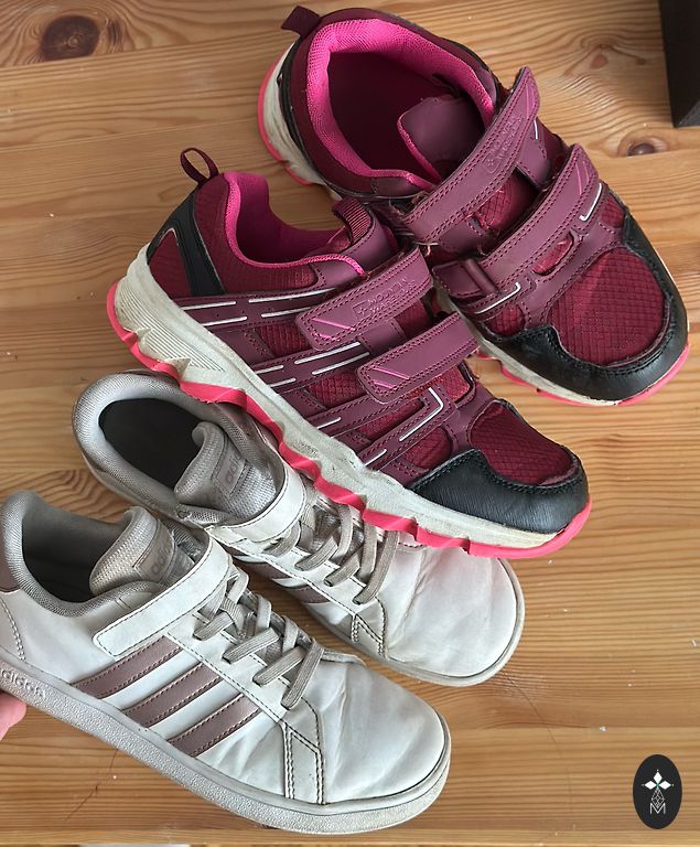 Dėvėtos vieną sezoną. Vienam priekiniam paviršiui nedidelės nusitrynimo žymės nuo intensyvesnio plovimo, bet jas galima pastebėti tik atidžiai žiūrint iš arti.
