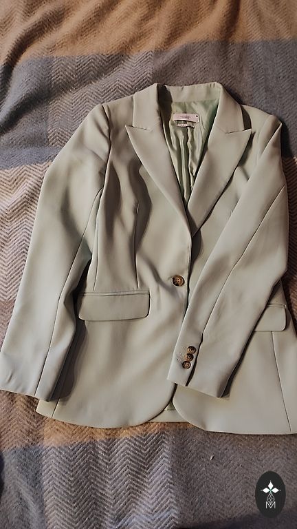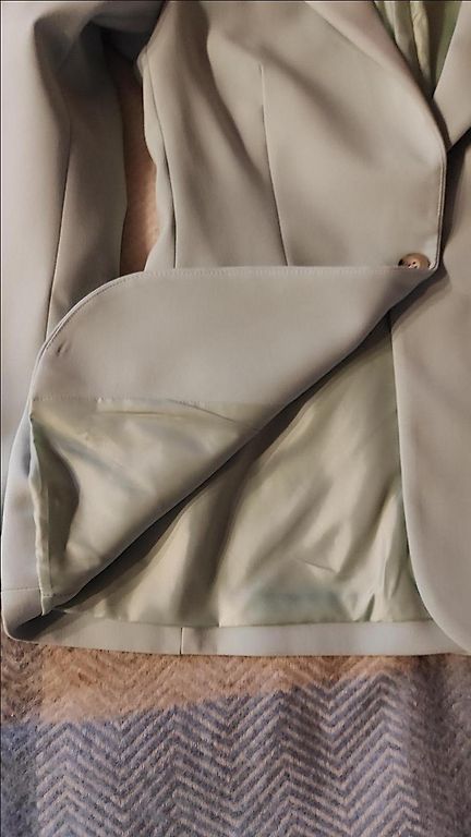 Надето один раз, указан размер 40, но подойдет на стабильный 38. Заужено в талии. На плечах подкладки.