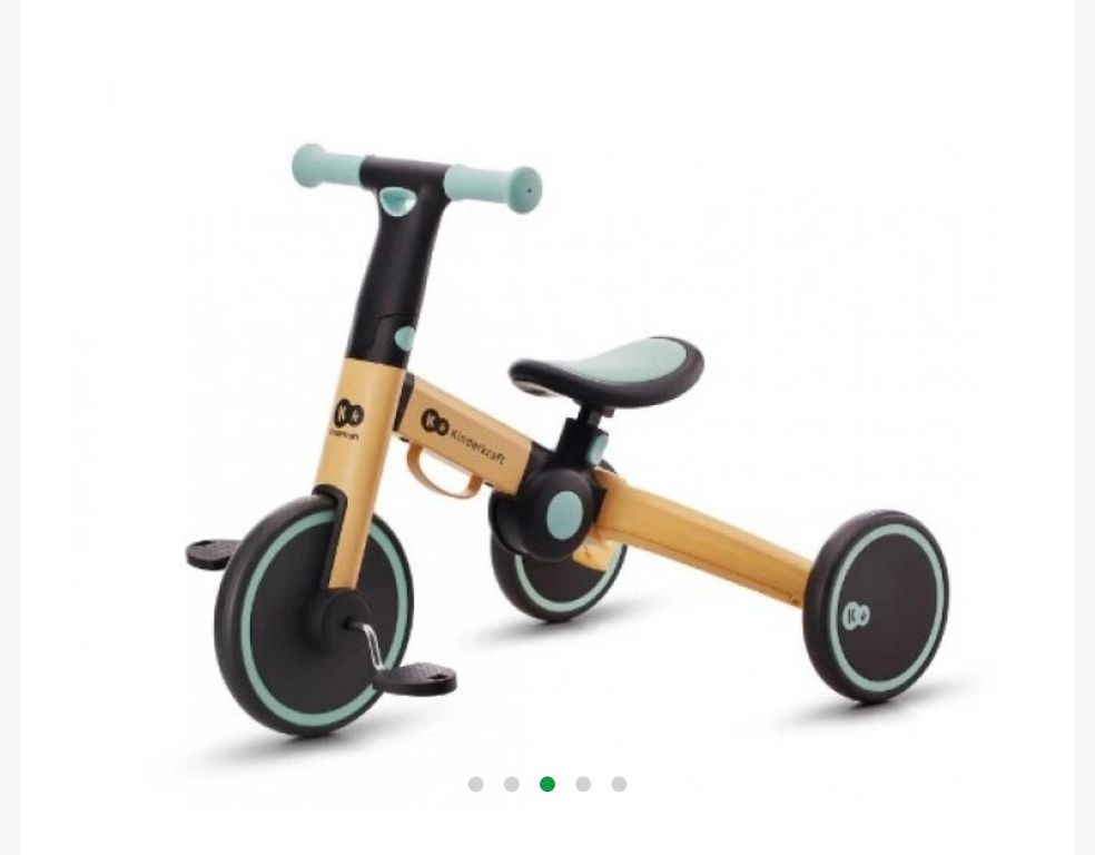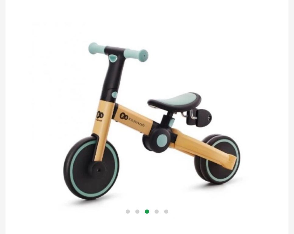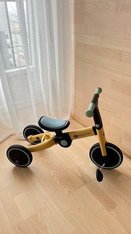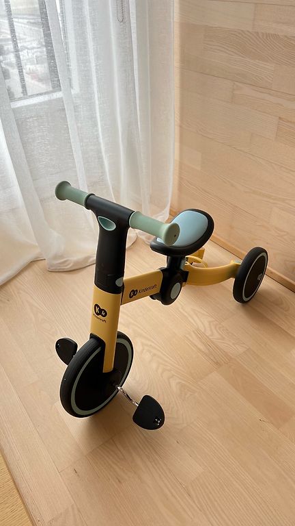 Balance bike for children aged 1-3 years, used by one child for one season. The screw paint is slightly worn, and the handle is a bit dirty (see photo), but everything functions. Can be converted into a scooter with four, three, and two wheels. Can be picked up in Riga, near Ikea and the t/c Saga area.