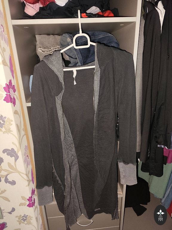 CASPARA "W. Pollux" didelio dydžio džemperis su gobtuvu. Stora, puri medvilnė, labai minkšta. Šviesiai pilka. Dydis nurodytas XS, tačiau yra didelio dydžio. Tikras dydis S/M.