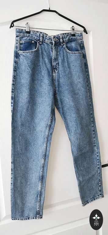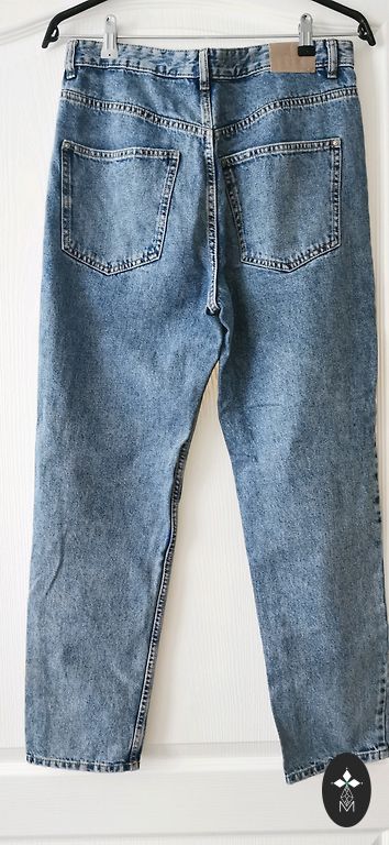 Apgaudinėjo kelis kartus. Spalva tamsesnė nei modelyje mėlyna. Dydis 38, ilgis/juosmuo 114/37 cm, aukšta juosmens.