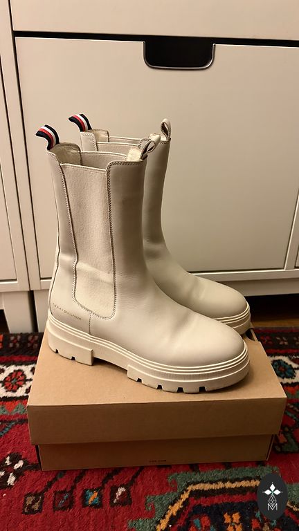 Sancho boots, long western-style boots. Ivory color, genuine soft leather. Condition is good. There are stains on the surface that can be cleaned with special care products. Shipping to parcel lockers is included in the price.