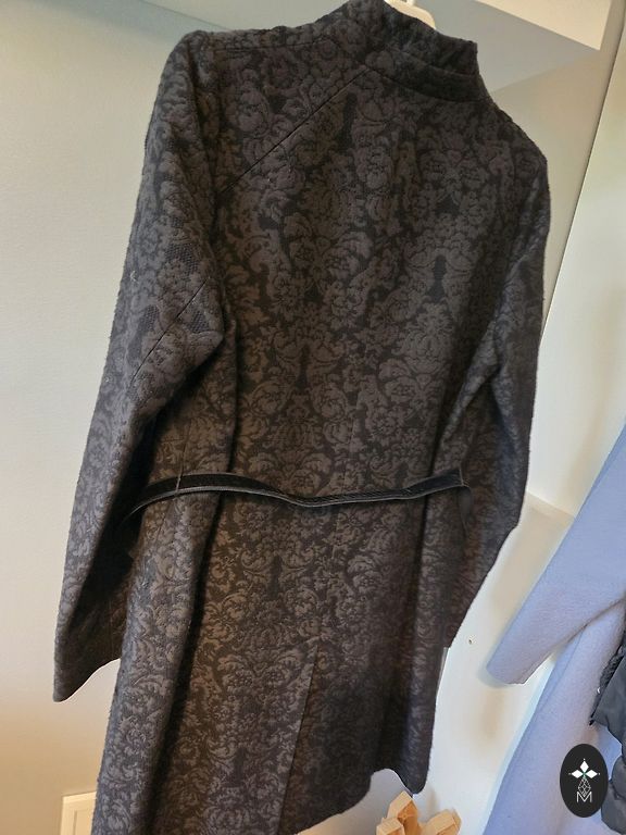 Короткая, с поясом, застежка на пуговицы и кнопки. Теплая.