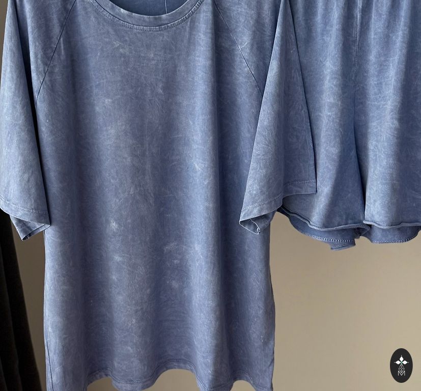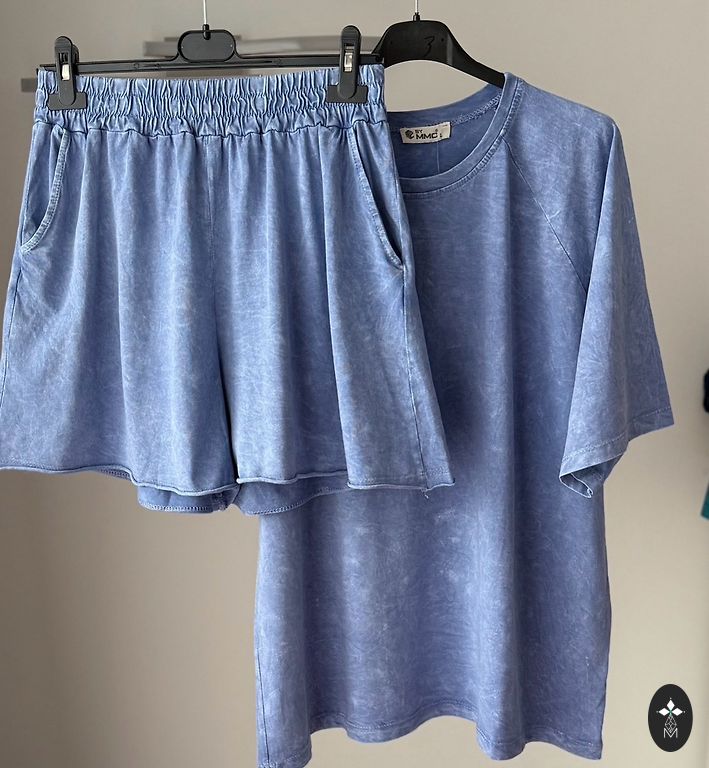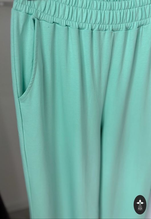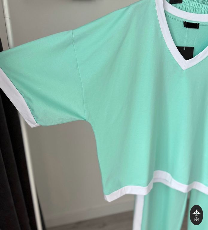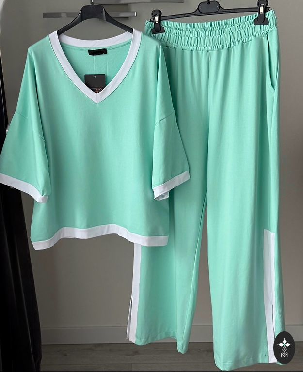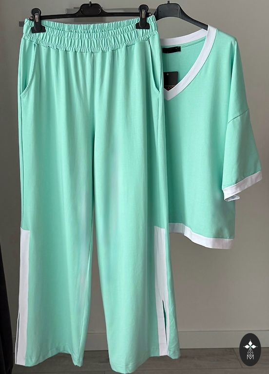 The outfit consists of trousers, a sweater and a T-shirt