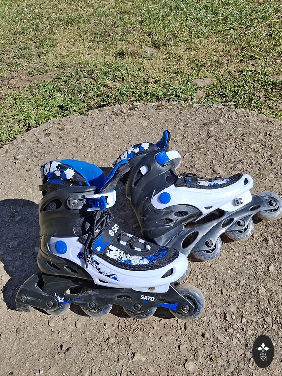 Roller skates, size 30-33, adjustable, rubber wheels.