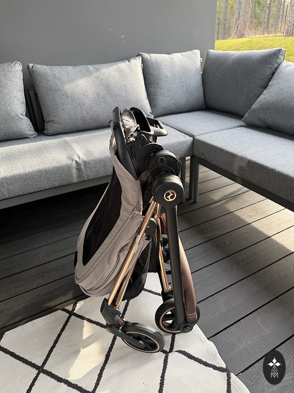 užtikrins ramius pasivaikščiojimus. Visiškai gulima padėtis, nugaros atramos aukštis reguliuojamas 4 padėtimis. Reguliuojamas ir minkštas kojų atramos aukštis. Vežimėlio stogelis turi UV50+ apsaugą nuo Saulės spindulių, jis yra prailginamas. Visų ratukų amortizacija užtikrina sklandų važiavimą nelygiais paviršiais. Vežimėlis patogiai valdomas viena ranka. Vežimėlį galima sulankstyti viena ranka - tiesiog patraukite ir paspauskite jungiklį sėdynės viduryje. Komplekte yra puodelio laikiklis. Erdvus vežimėlio pirkinių krepšys. Priekinius ratukus galima užblokuoti važiavimo kryptimi. Panoraminis langelis stogelyje. Naudojimas: nuo gimimo iki 22 kg