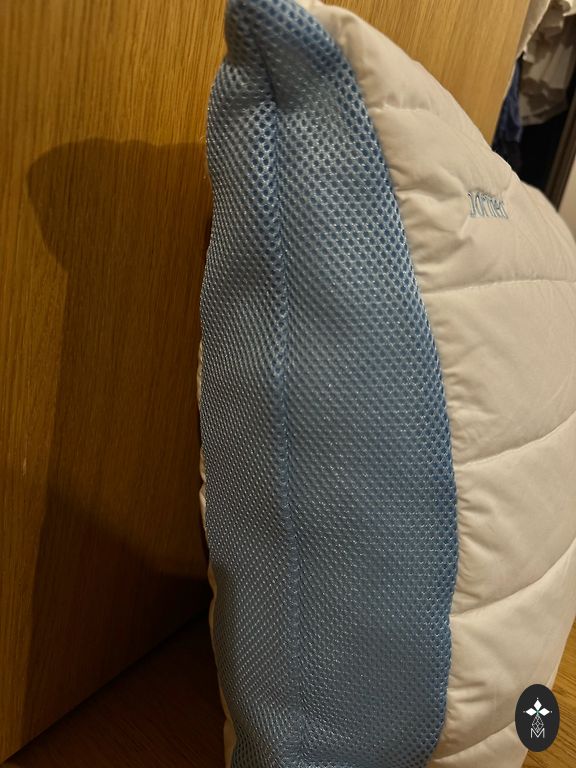 Сплю на такой же и она отлично помогает расслабить напряженные плечи и шею.