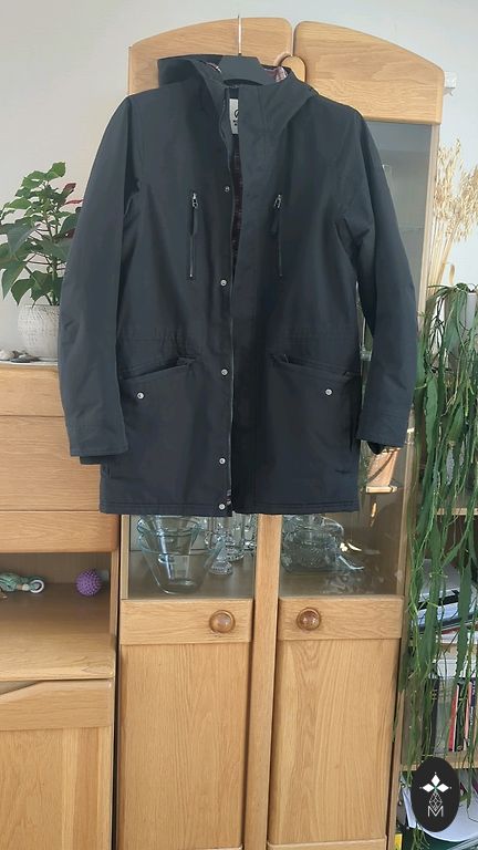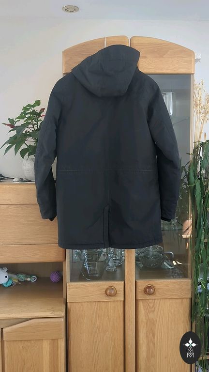 Siltināta jaka no ūdensnecaurlaidīga tekstila. Detalizēts apraksts: kapuce ar noņemamu aizsargmasku ar pogām, rāvējslēdzēja aizdare, trīs ārējās kabatas un divas iekšējās, vidējais izolācijas slānis.