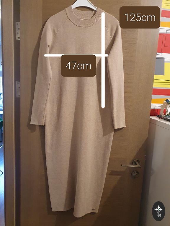 Pirktas čia pat andelėje. Kelnų ilgis 82cm, liemens plotis 43cm, šiek tiek tempiasi(1cm). 2-oje nuotraukoje matosi kaip atrodo užsidėjus (mano ūgis 168cm). Yra kišenėlės. Dydis ant kelnių 10. Aš vilkėjau 1 kartą.