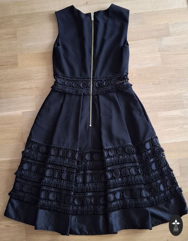 Gražiai krentanti, plisuota, pūstas vakarinė suknelė. Suknelė su pamušalu. MNG dydis S Midi ilgio, suknelės ilgis nuo peties 128cm. Juosmens srityje įsiūta guma, todėl elastingas juosmuo. Sijono dalies ilgis nuo juosmens 90cm