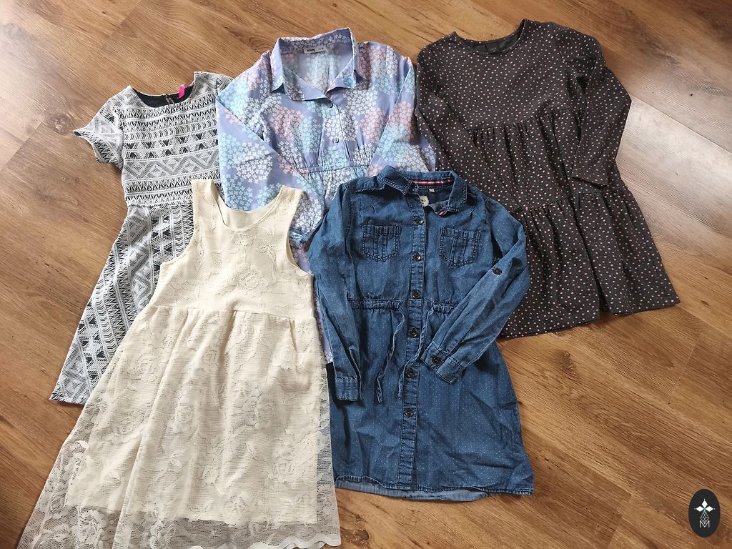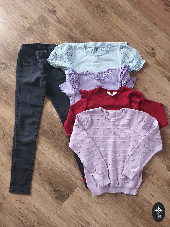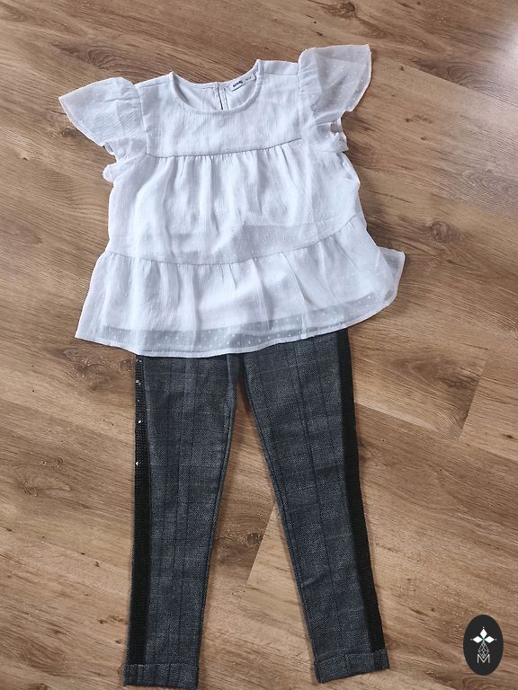 2 komplektai mergaitei ant kelnių ištraukta virvutė nuotrauka pridėta.ant etiketės nurodyta 140 mes nešiojam 134izm.