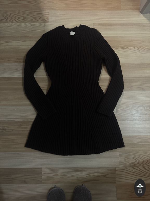 Sijono ilgis 92 cm.Džemperio rankovių ilgis 70 cm. Nurodyta nuotraukoje. Tampri. Medžiaga maloni, minkšta. Ant suknelės nurodytas L dydis, bet geriau atrodys ant S arba M. Pirkau čia už Andelėje. Taip ir ne nešiojau, nes man per trumpas.