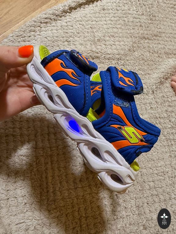 Sandals are great, wore about 7-8 times (paint on the noses is worn off, as he was not walking very well and stumbled / scuffed as he could. Otherwise they are in excellent condition, with lights on the sole (switch on the side).