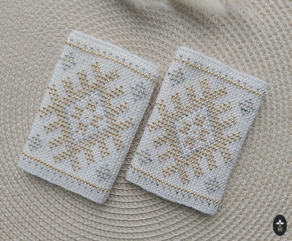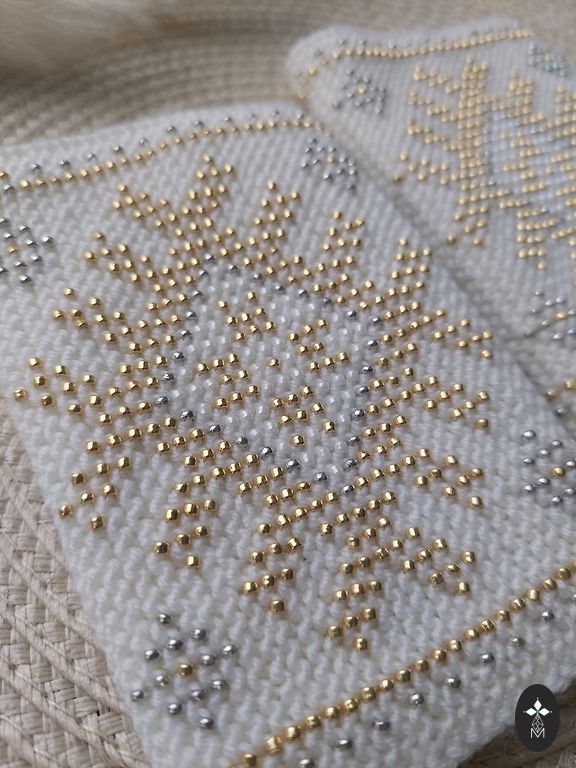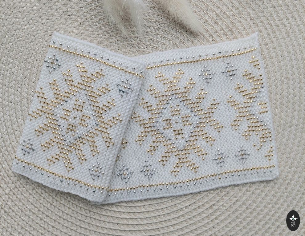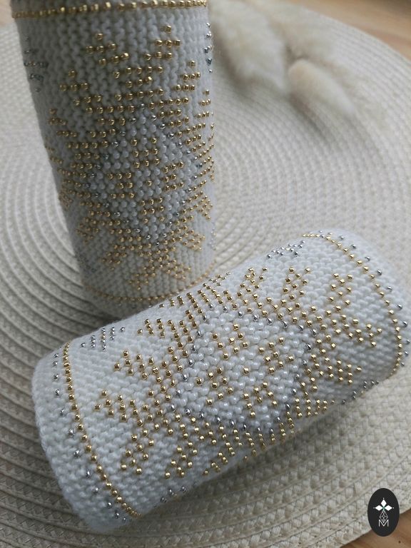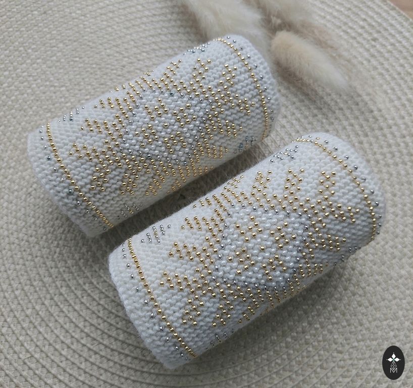 Very beautiful wrist warmers! For holidays or everyday. Cream white with bronze, white and shiny beige beads.