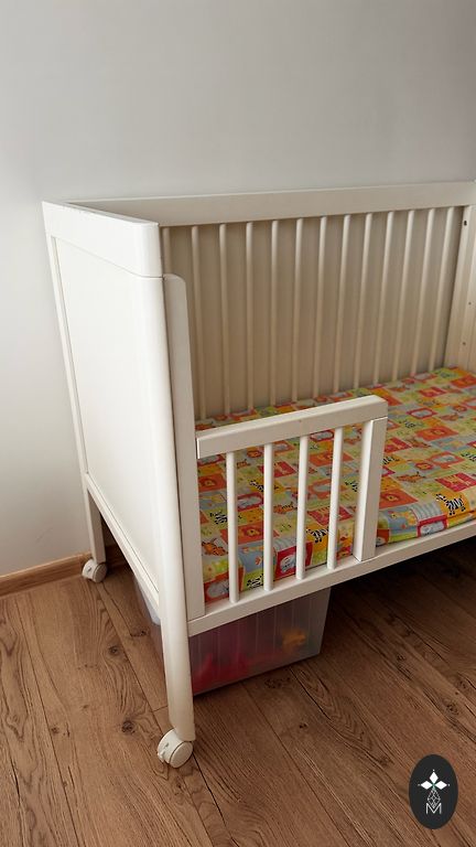 Parduodu geros būklės IKEA Sundvik lovytę su čiužiniu ir atskirai pirkta šonine lenta bei apsauginiu borteliu. Lovytė geros būklės, šoninė lenta apklijuota lipdukais. Lovytės išmatavimai 120x60, šiuo metu išardyta. Randasi Vilniuje, Žvėryne, išsivežti patiems.