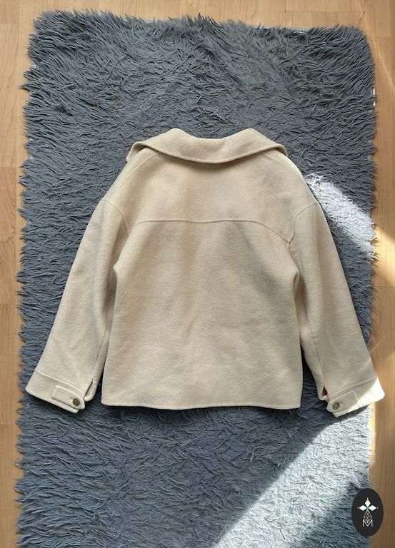 Ļoti skaists, kvalitatīvs, sievišķīgs, maigas krēmkrāsas mētelis ar brūnas ādas elementiem un efektīvu kapuci ar rupja adījuma oderi. Spontāns pirkums mirkļa iespaidā, bet tā arī nesadraudzējos. Pārāk skaists, lai tā vienkārši skapī turētu. Mētelim mugurpuse nedaudz pagarināta, lieliski izskatās kleitu nēsātājām. Derēs uz S izmēru (36). 70% vilna, 20% poliesters, 10% kašmirs. Piedurkne no pleca 65 cm, zem paduses 46, pleci 41, zem padusēm 48, garums mugurpusē 92. Ja nepieciešama papildus info vai foto, droši raksti! 😉