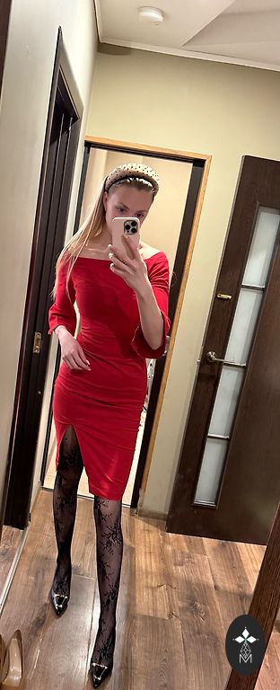 Raudona kokteilių suknelė, nėriniai, JK-8 dydis arba 36 Europos dydis. Vieną kartą dėvėta.