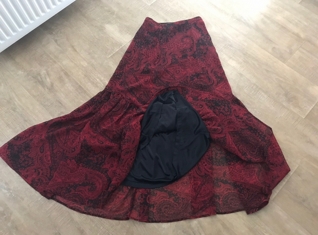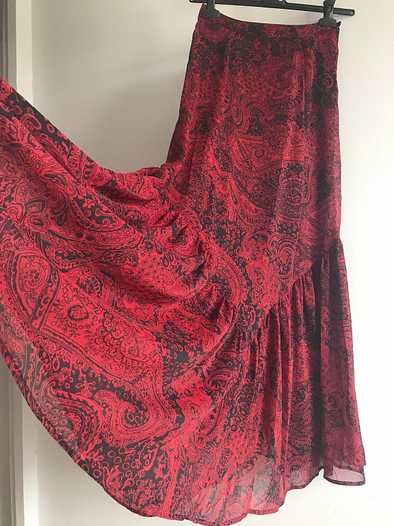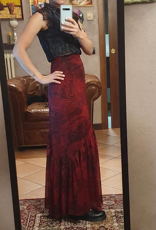 Bright red dress sewn with high quality by the seamstress. Lightweight, breathable, and skin-friendly fabric. Hardly wrinkles. Dress length is 87cm. 42cm down from the shoulder line is elastic band. Raised waistline. Width is 66cm when not stretched. On the figure, it looks like the dress in this video https://www.facebook.com/share/r/1LCJaV9XiK/?mibextid=wwXlfr
