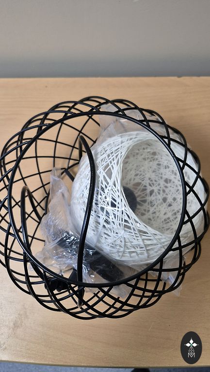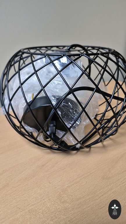 Hübsch brand metal lamp in black color, inside white. Diameter 22 cm, height 35 cm. Cord length 105 cm. Bulb max LED 15 W according to the new table.