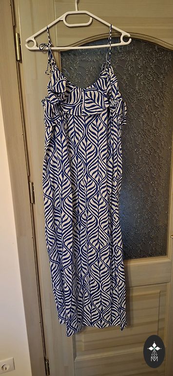 Двухчастное элегантное кружевное платье итальянского бренда (Amelie Folies). Размер не указан, но соответствует размеру M. Длина платья ~ 132 см, ширина под мышками ~ 43 см, талия (резинка) ~ 28 см в нерастянутом виде, ~ 50 см. Состав - вискоза 95%, эластан 5%. Куплено здесь, был указан размер L, поэтому не подошло.