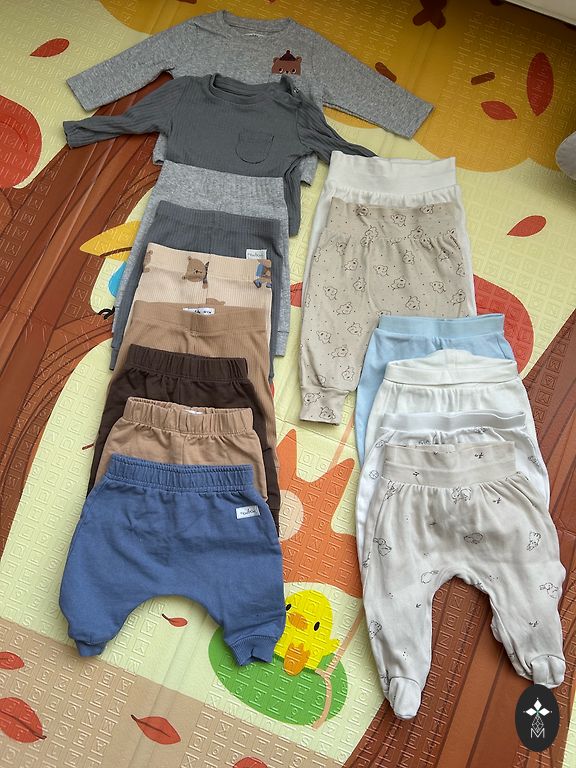 Parduodu du sportinius kostiumėlius, dėvėtus vienam vaikui. 74 dydis. Vienas susideda iš 3 dalių (liemenė + džemperis + kelnės). Antrasis susideda iš 2 dalių (marškinėliai ir kelnės). Pirkti Vokietijoje. Ilgutsims arba Omniva, DPD.