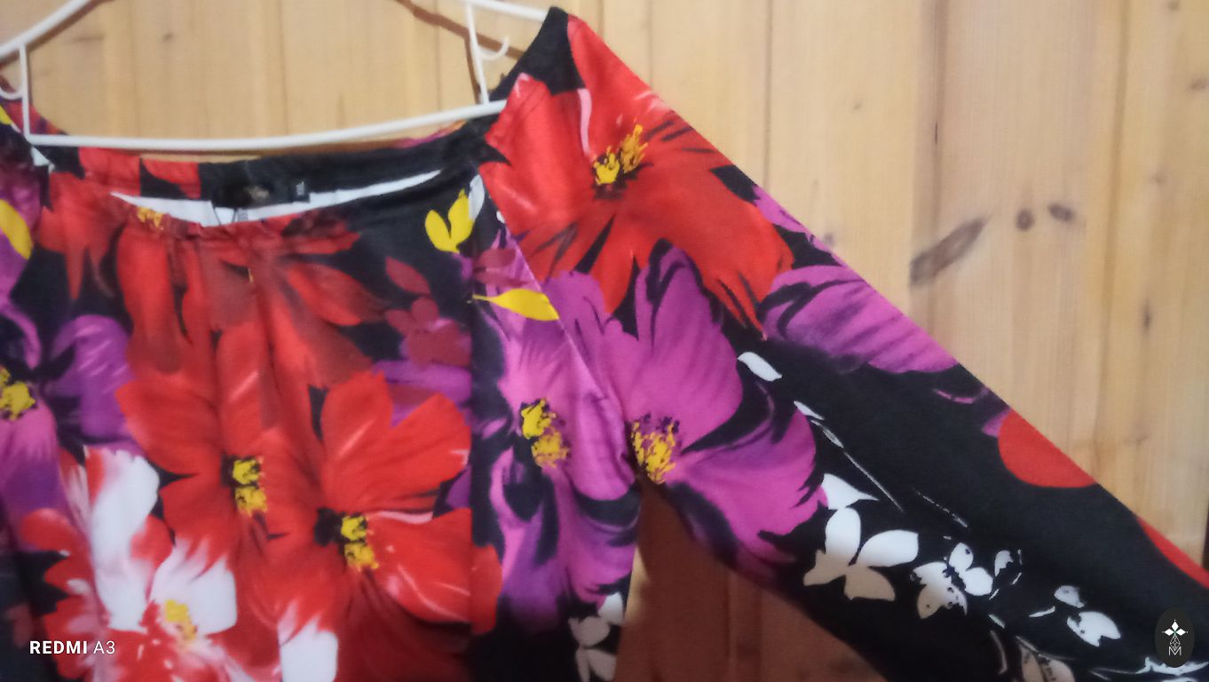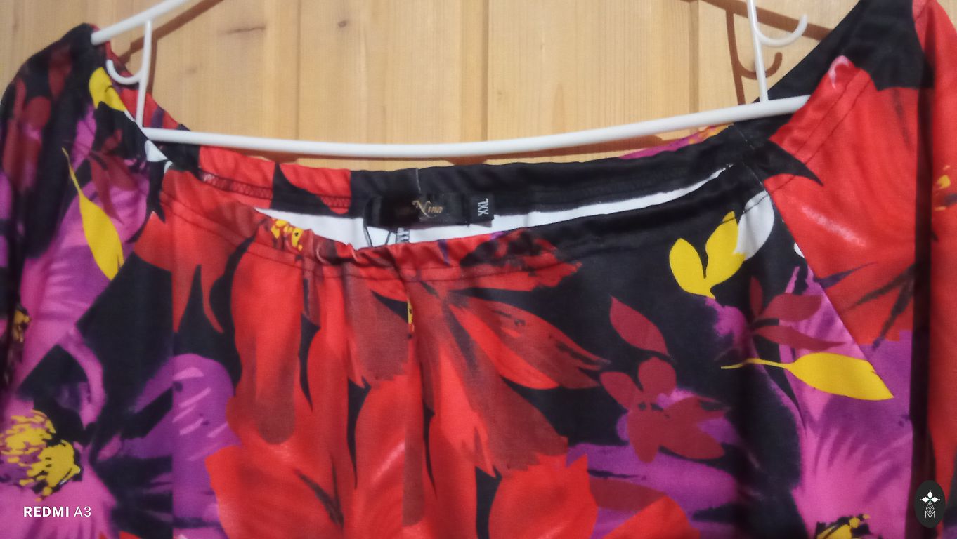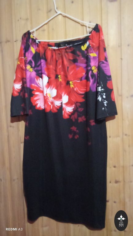 A beautiful and comfortable dress with a lining, stretchy, skin-friendly material. The dress visually slims the figure, the drape hides the stomach area. Bust 110, hips 115 cm, length 100 cm, elastic, not very thick.