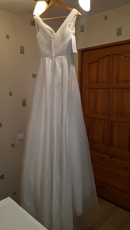 Новое платье м, в жизни очаровательно красивое и надев его, выглядит фантастически. Для тех, кто хочет свадьбу, например, на пляже.. будет идеально. Перенесли нашу свадьбу на конец ноября, поэтому ранее купленную красоту не удалось надеть. Чтобы не замерзнуть, я приобрела платье с длинными