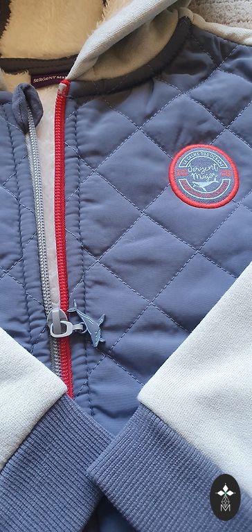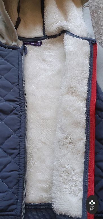 Superinis švarkelis šaltam orui. Dydis nurodytas 110., bet atrodo trumpesnis. Geriau vilkti ant 104. Arba ant 110.jei vaikas smulkus. Ilgis nuo peties 41cm. Labai minkštas, šiltas ir lengvas, gražaus atspalvio.