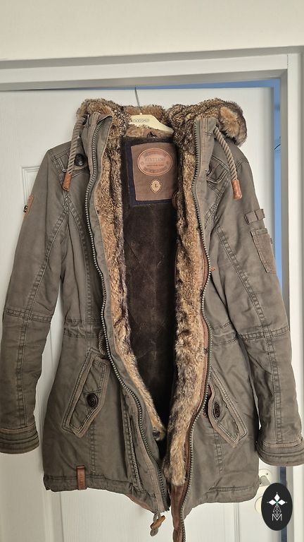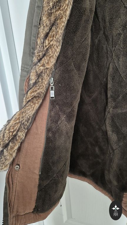 Nailonist Oxford-parka kapuutsiga ja untuvaga. Kapuuts eemaldatava naturaalse karusnahast äärega. Kandsin seda kaks hooaega, vaheldumisi teiste talvejopedega. Palju taskuid! PJS-märk vasakul varrukal ja tugevdatud õmblused küünarnukkidel. Trikooks mansetid. Esitasku nahast kinnitus on veidi kulunud (võimalik uuendada õmblusateljees). Väga elegantset oliivirohelist värvi. Lisafotod ja mõõdud saadaval nõudmisel. Originaal.