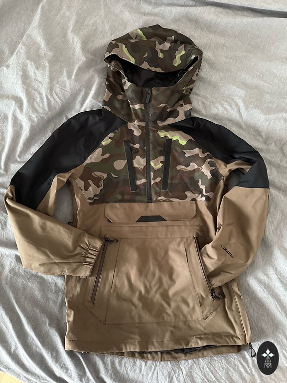 2 kišenės šonuose (su užtrauktuku), viduje ties juosmeniu guma (nuimama), kišenė viduje, užtrauktukai po pažastimis, rankoms skylės nykščiams.