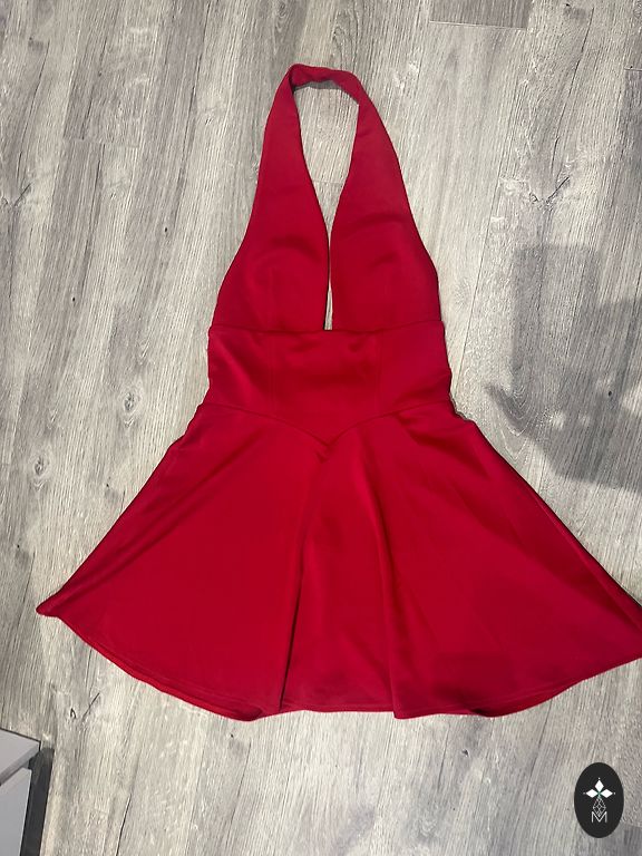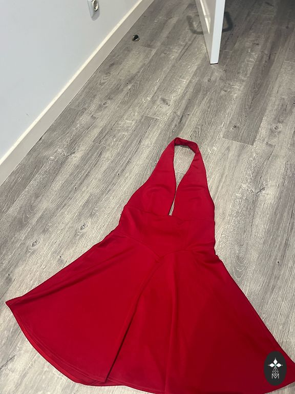 Elastinga, tamsiai mėlyna kokteilinė suknelė 40 dydžiui. Pasiūta viršutinė dalis ir apatinis raukinys, tampri pamušalas. Permatomos rankovės su dailiais rankogaliais. Ilgis nuo peties 96 cm, tačiau apsivilkus gali sutrumpėti, krūtinės plotis nestiepiant 45 cm.