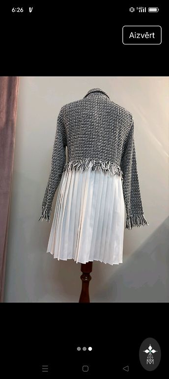 Очень красивое платье с подкладкой и пышной юбкой. По бокам скрытый замок-молния. Есть карманы. Размер указан 40, но лучше всего подойдет для носительницы размера 38. Очень красиво смотрится в сочетании с длинными рукавами. Цвет как на фото в Интернете.