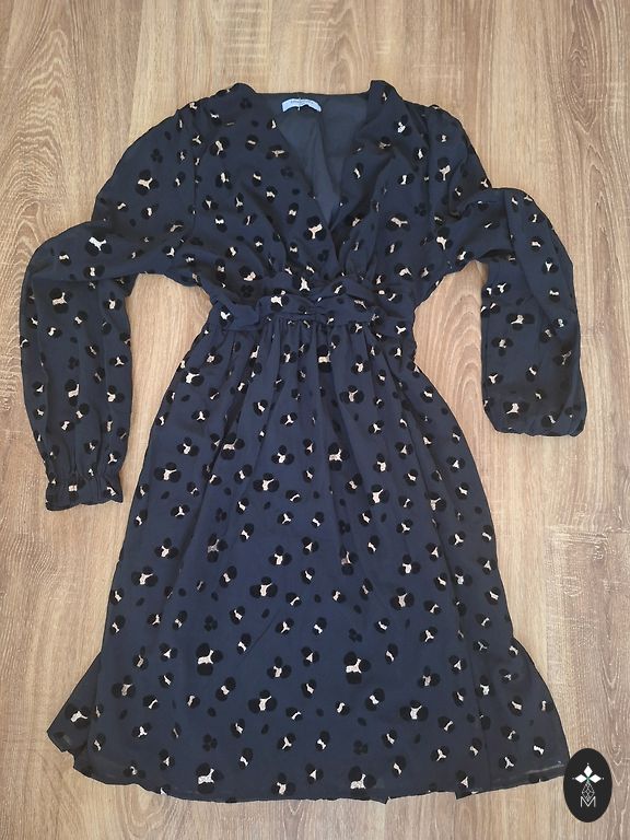 Suknelė nauja, su apatiniu sijonu, viena suknelės pusė yra ilgesnė, nuo peties dalies iki pažasties pusės yra volanas. Švelni, lengva vasaros suknelė. Pirkta Anglijoje, labai graži.