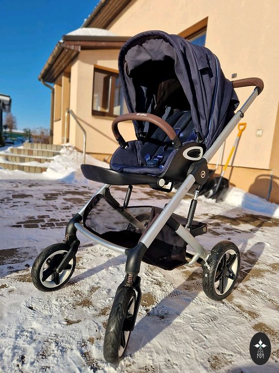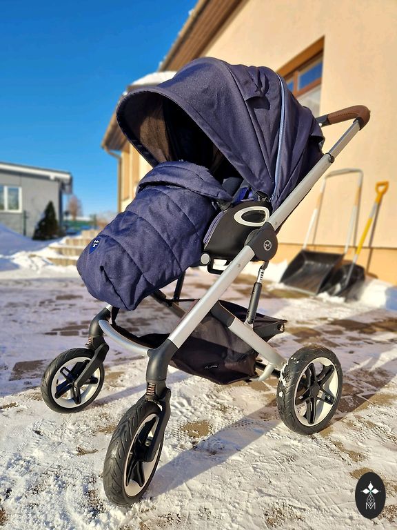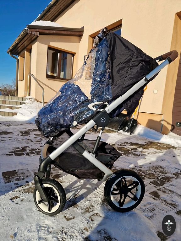 Ratiņi ļoti labā stāvoklī, pēc viena bērna. Komplektā ietilpst pārsegs kājām un lietus plēve.