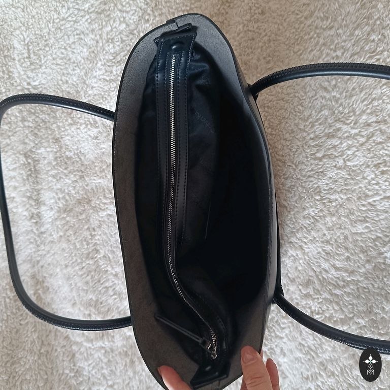 Moteriška Guess rankinė, juodos spalvos. Labai talpi. Rankinė puikios būklės. Galima nešioti per petį su ilgu dirželiu. Galima rankose, su trumpomis rankenomis. Iš defektų - nusitrynęs užtrauktuko užraktas. Visa kita puikios būklės.