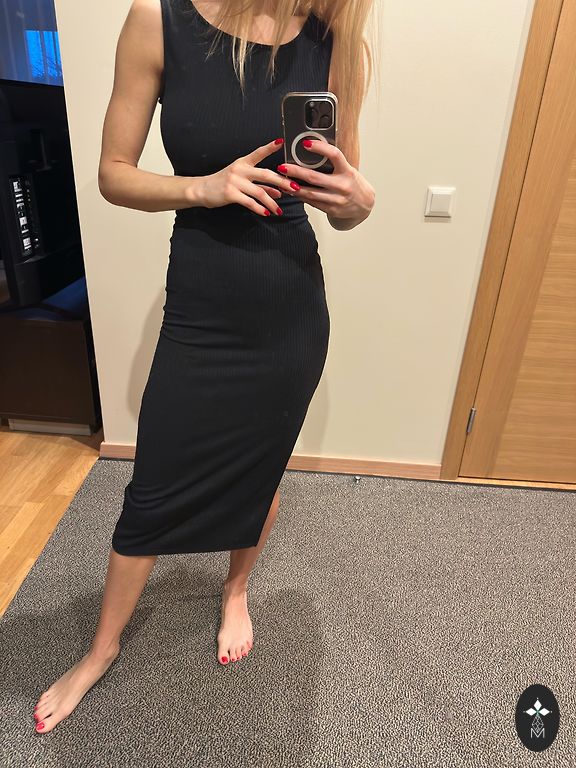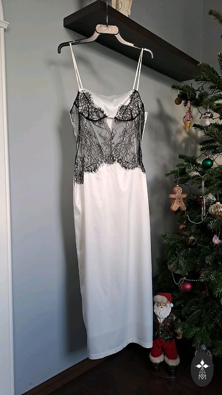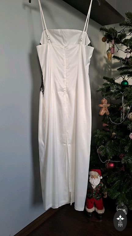 Jauna, nav vilkta, ar spīdumiņu.😊Materiāla birka nogriezta, jo traucēja, taču tā arī neuzvilku… Uz augumu apm.170/175 būs līdz zemei(bez apaviem). 38izm., mugurpusē un priekšpusē ar V veida izgriezumu. Audums elastīgs(adīts). 15€+sūtīšana
