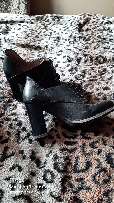 Parduodu tamsiai rudas aukštakulnius batus, dėvėtus 5 valandas, tačiau man per dideli. Yra dėžutė ir keičiami kulniukai. Atitinka 37 dydį. Nedidelis įbrėžimas ant priekinės dalies, kurio iš toli nematyti, o raudonų padų būklė matoma nuotraukose. Nurodyta, kad oda, bet nežinia, ar tuo galima tikėti 😊