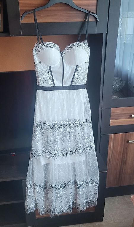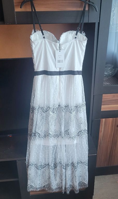 A fantastic new Lipsy VIP dress, size UK4. Designer, expensive lace and a very stylish zipper at the back with a bow 🥰🥰🥰. Perfect. New, but without tags.