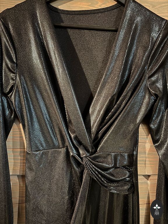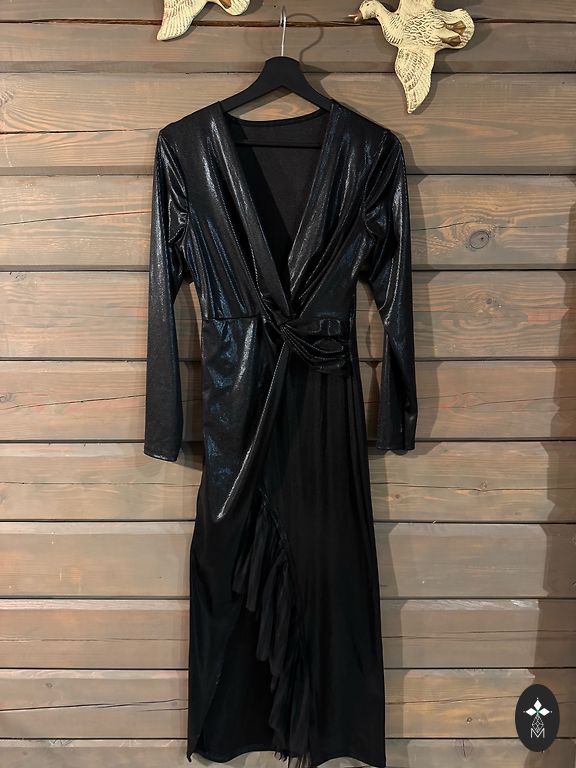 Ilga mėlyna suknelė su blizgučiais