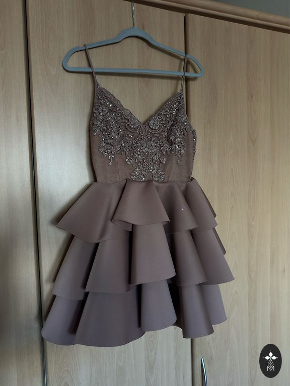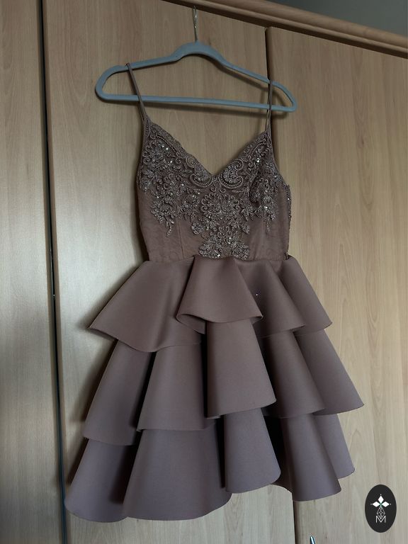 Fuksijos spalvos suknelė, 38 dydis, atvira nugara, su petnešomis. Trūkumų nėra.