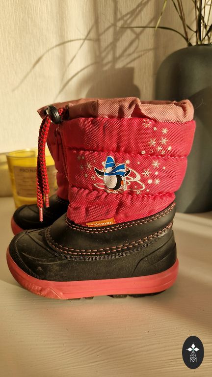 Treksta vaikų žieminiai batai, 26 dydis (17 cm padas). Lengvi, patogūs batai su šiltu pamušalu ir Gore-tex membrana. Batų padas minkštas su ice lock sistema (tarsi užtikrina neslydimą). Vizualinis įbrėžimas ant kairės kojos pirštuko, matomas nuotraukoje, kuris neturi įtakos batų funkcionalumui. Lipdukai kaip nauji. Avėjo viena mergaitė. Siuntimas nėra įtrauktas į kainą.
