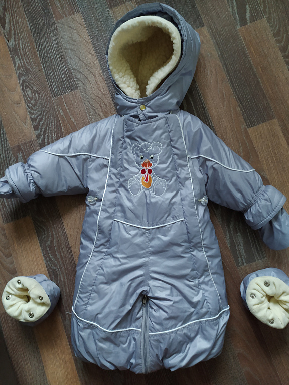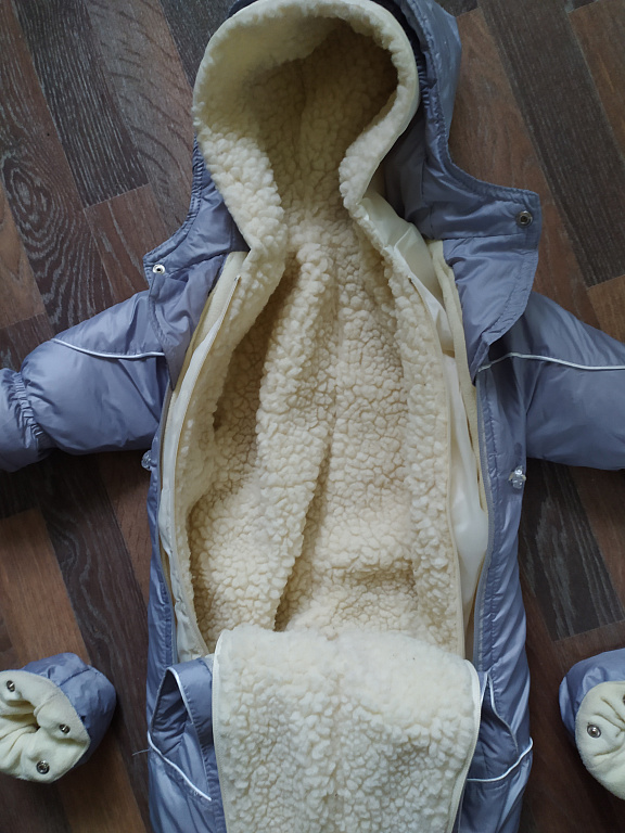 Pārdodu ziemas kombinezonu 80. izmēra. Var izmantot no dzimšanas, jo apakšā kājiņas aizveras un veidojas kokons. Aitas vilna ir noņemama, var valkāt gan kā demi-sezonas, gan ziemā.