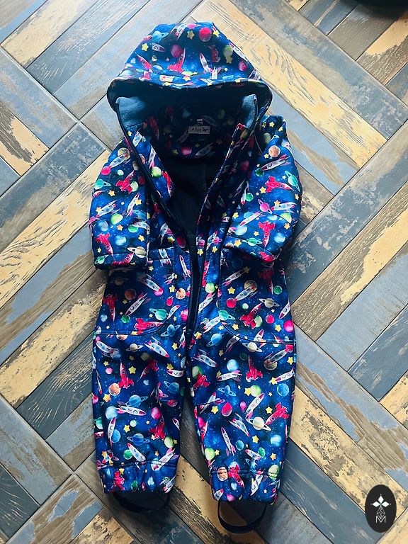 Kokvilnas flīsa kombinezons EcoEmi, 74 izmērs, lietots, ļoti labā stāvoklī, pēc viena bērna. Zīls ar melnu.