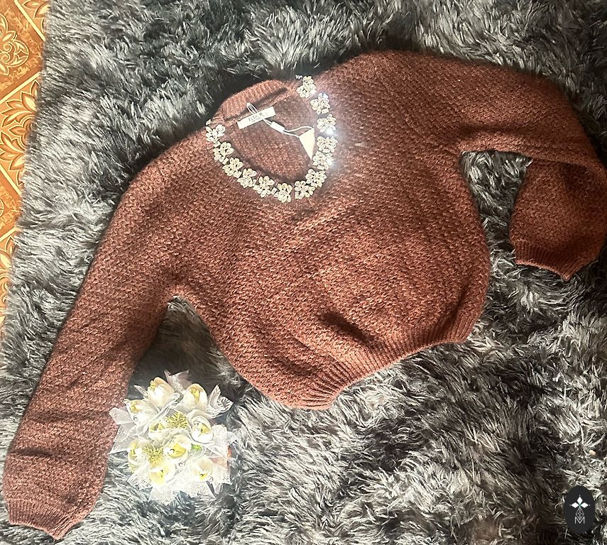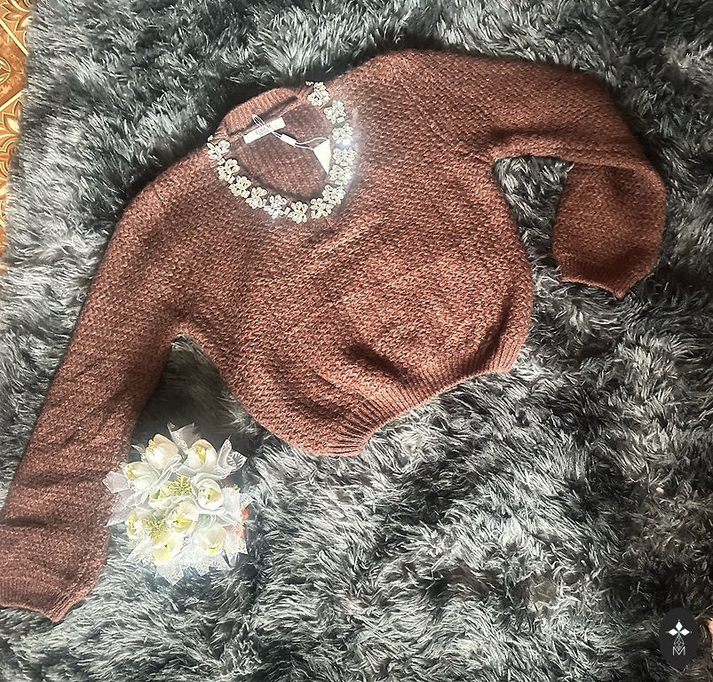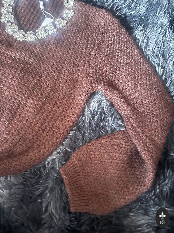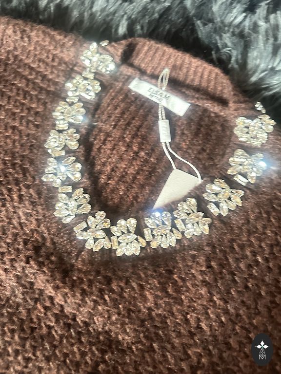 Naujas, eleganti megztinis-suknelė, deja, prarastos etiketės. Dydis S, tačiau audinyje yra elastano, galima šiek tiek ištempti. Krūtinė 84 cm - 92 cm (tempiant), liemuo 78 cm - 84 cm (tempiant), klubai 86 cm - 92 cm (tempiant), rankovės nuo pečių 63 cm, nuo pažastų 49 cm, ilgis 105,5 cm.