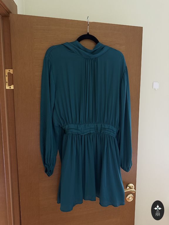 Krūtinė: 92 cm Liemuo: 72 cm Pečiai: 38 cm Rankovių ilgis: 31 cm Ilgis: 85 cm