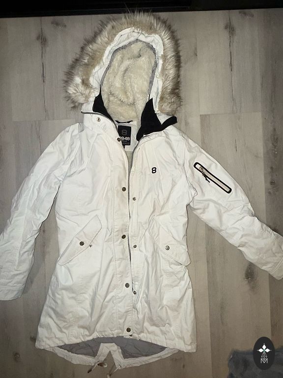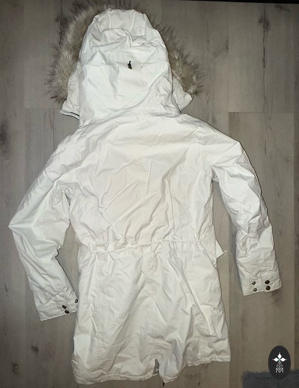 The item has excellent quality. It was bought in the USA. The jacket has a soft and pleasant touch fabric. The hood is removable. I decided to sell because black is not my color.